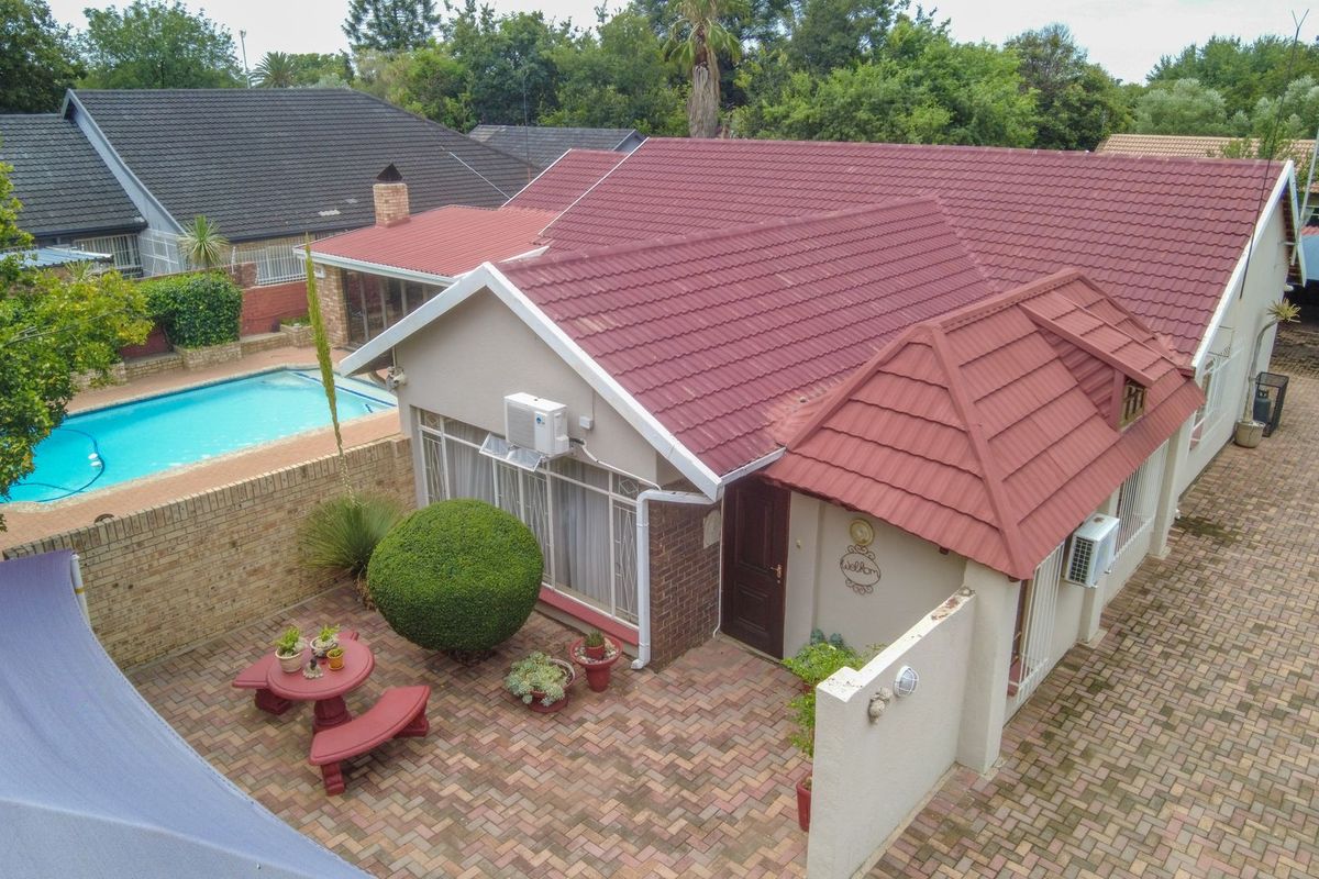 Poolside entertainer's retreat in Stilfontein with an entertainment lapa overlooking the pool, ample parking and backup generator — five bedrooms and two bathrooms.