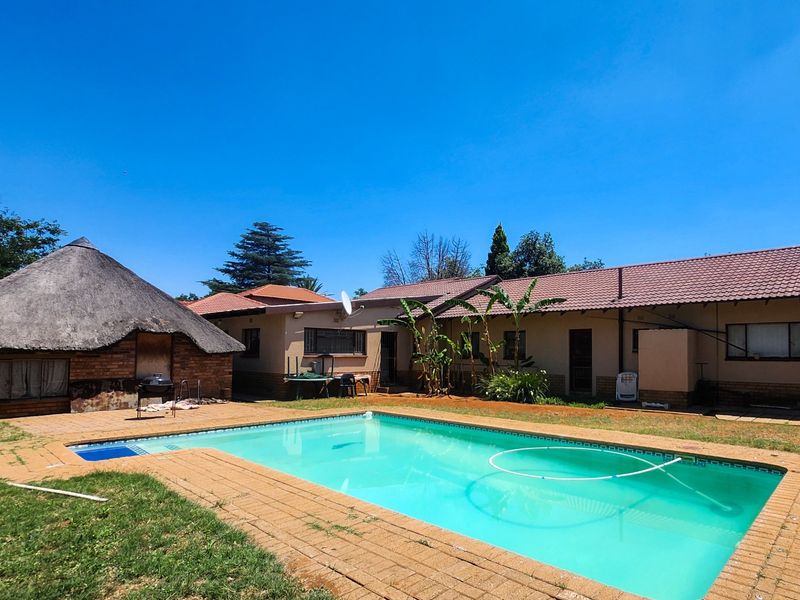Entertainer's dream in a peaceful, leafy setting with seamless indoor-outdoor flow to a braai room and irrigated garden fed by a borehole; three bedrooms, two baths, four garages.