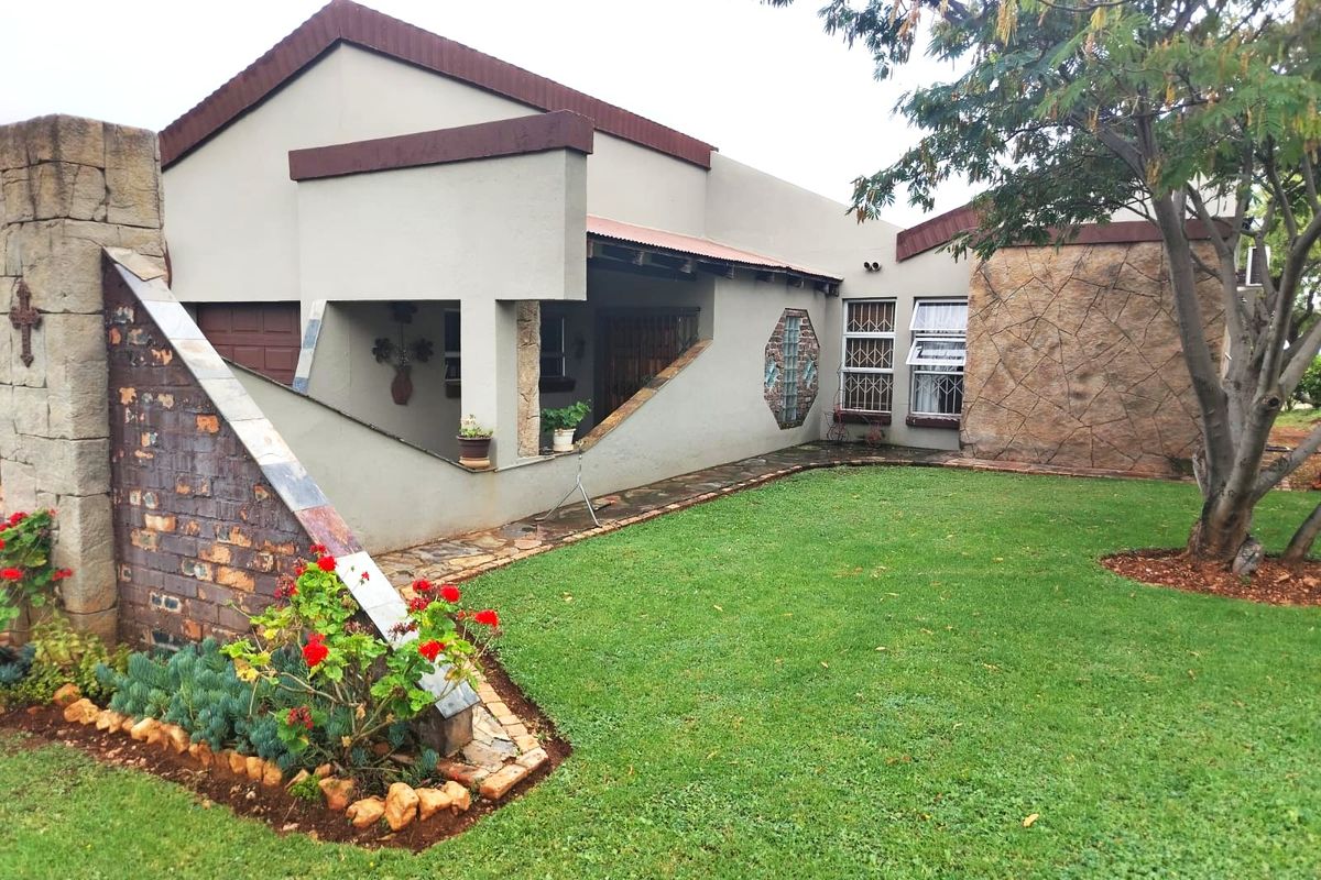 Private bushveld lifestyle in Weiter Raum estate near the N4 — under two hours from Pretoria/Johannesburg — three bedrooms, two baths, pool with built-in braai and six garages.