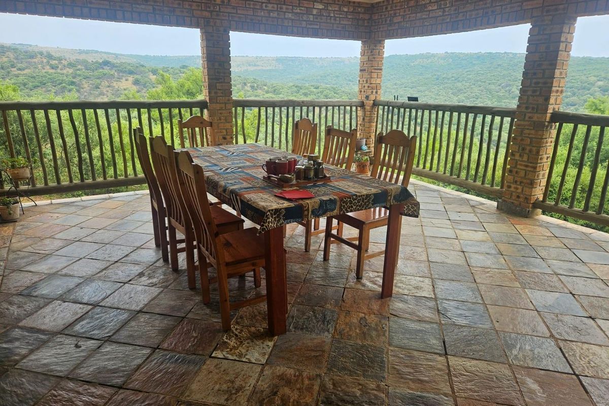 Experience exclusive bushveld living in Swartruggens/Marico, minutes from Pilanesberg and Sun City, with 360° views, free-roaming wildlife, pool and six bedrooms, four bathrooms.