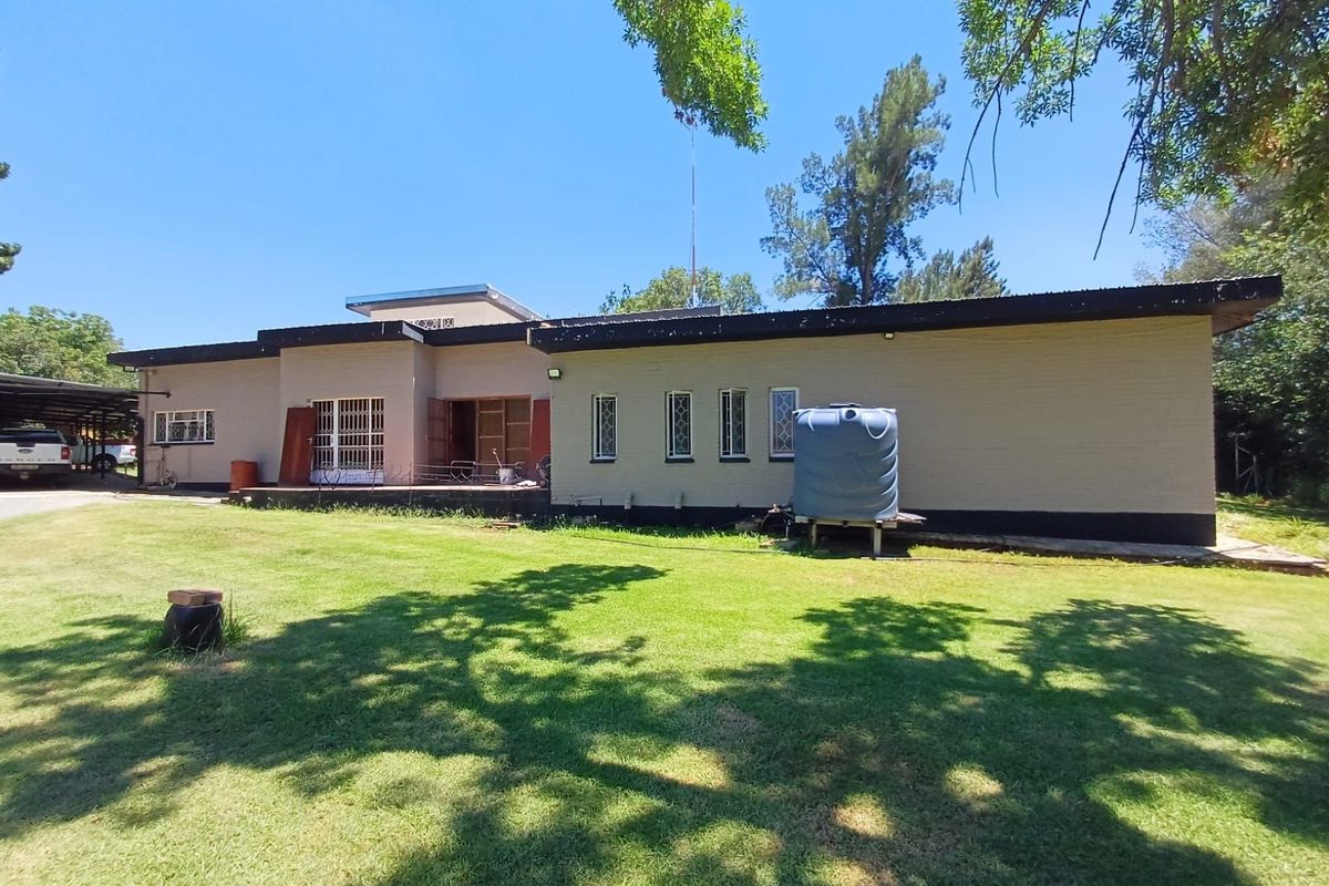Generational family living or investor's dream in Wolmaransstad with expansive grounds and extra 1,428m² stand for townhouse development, separate flatlet, entertainment area, five bedrooms and four garages.
