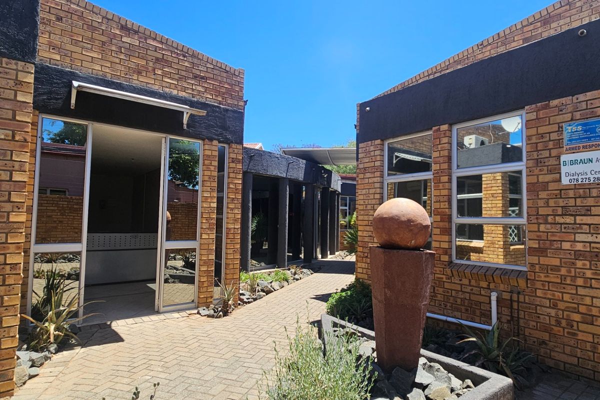 Versatile investment within walking distance of schools, nursing college and hospital — four self-contained office units with kitchenettes and boardrooms, seven automated garages, secure walled yard with electric fencing.