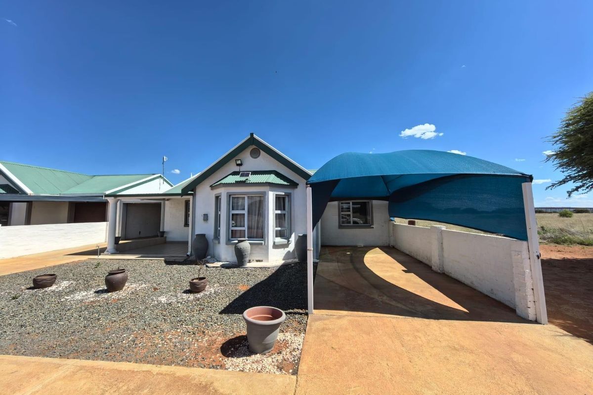 Escape to relaxed Northern Cape veld life near Kimberley, with open-plan light-filled living and an entertainment room with built-in braai opening to a private enclosed garden. Two bedrooms, single garage.