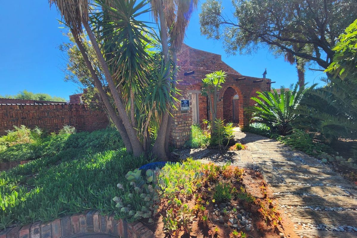 The entertainment area, complete with a built-in braai, opens onto a sparkling swimming pool, creating the perfect setting for relaxing and entertaining guests. The garden is well maintained and fitted with an irrigation system for easy upkeep.