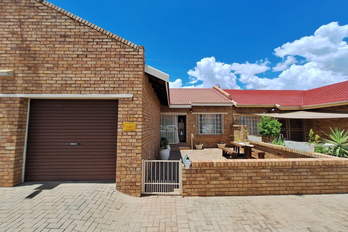 The property includes a single garage with an electric door and is located within a secure complex offering electric fencing, burglar bars, safety gates, and a guarded entrance, ensuring peace of mind.