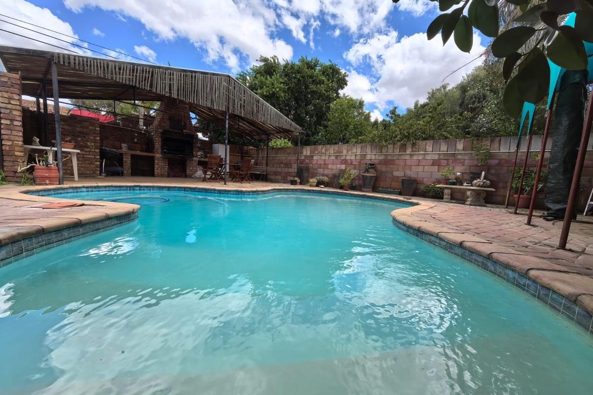 Leafy Rhodesdene family retreat with borehole water and poolside under-roof braai, private study off the master and separate one-bedroom flat — three beds, two baths.