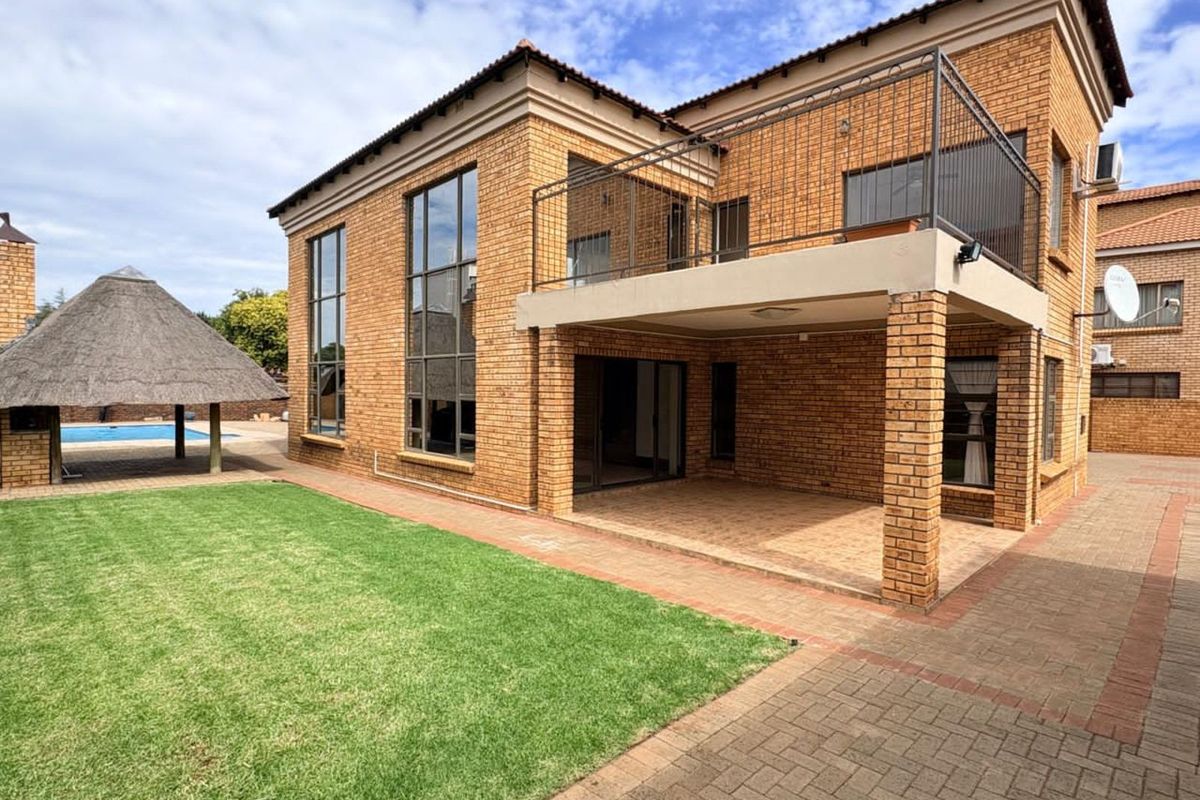 Entertain effortlessly in a secure, leafy neighborhood with pool, lapa and built-in braai; includes separate one-bedroom flatlet and four bedrooms, three bathrooms for family living.