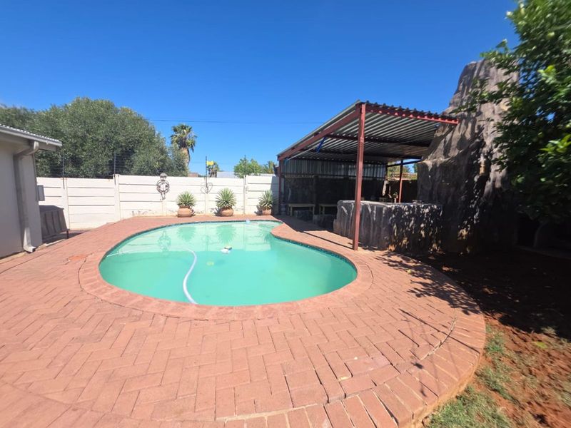 Relaxed family living in peaceful Southridge with a private swimming pool and generous garden, open-plan tiled living and chef's kitchen with abundant cupboards — three bedrooms, two bathrooms, double covered parking.