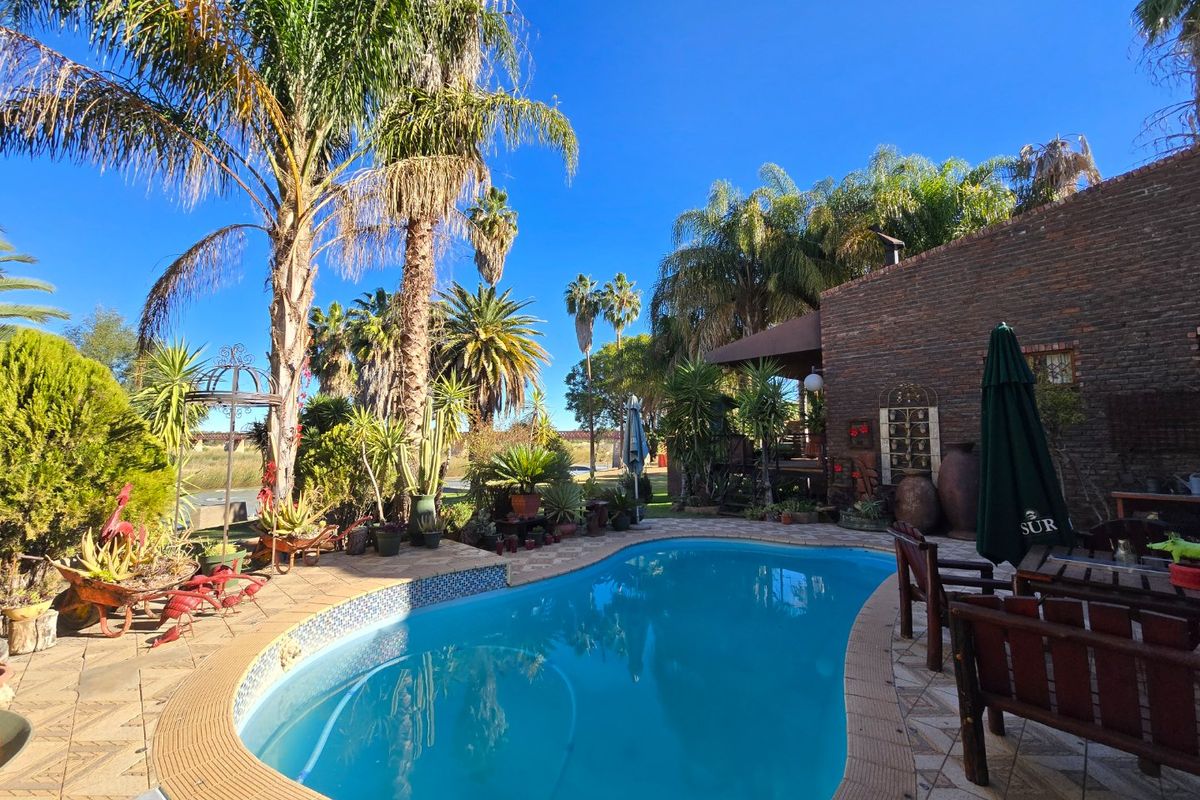 Set on an expansive 3 127m2 erf along the lush banks of the Orange River, this exceptional residence offers a rare blend of luxury, tranquillity, and versatile living. Positioned in sought-after Middelpos, this is riverfront living at its finest. Surrounded by manicured lawns and mature trees, the property enjoys uninterrupted river views and a peaceful atmosphere - perfect for relaxed family living and stylish entertaining.