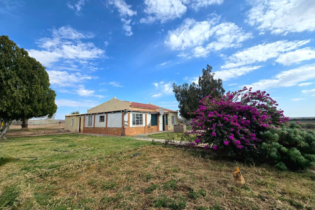 Embrace peaceful smallholding life on the N10 between Upington and Groblershoop, overlooking farmland vistas, with 5 kW solar — three bedrooms, one bathroom and garage.