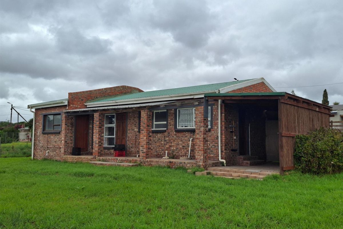Relaxed small-town living between Mossel Bay and Stilbaai, with Langeberg mountain views, covered back stoep and large enclosed garden — practical open-plan home with 2 beds, 1 bath, single garage.