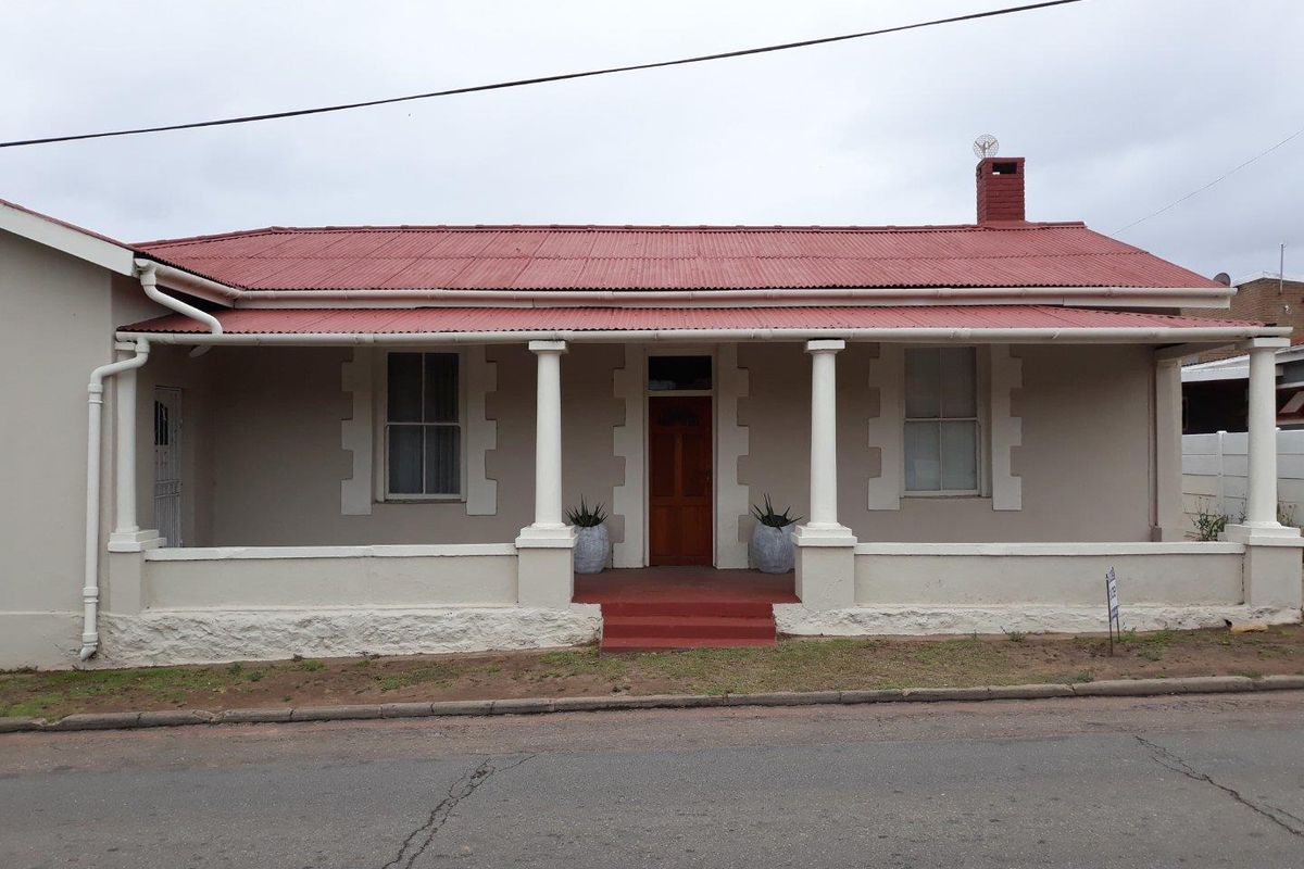 Central Albertinia living with income potential and classic character — original wooden floors and a fruit-filled garden opposite the clinic; four bedrooms, three bathrooms, one-bedroom flatlet.