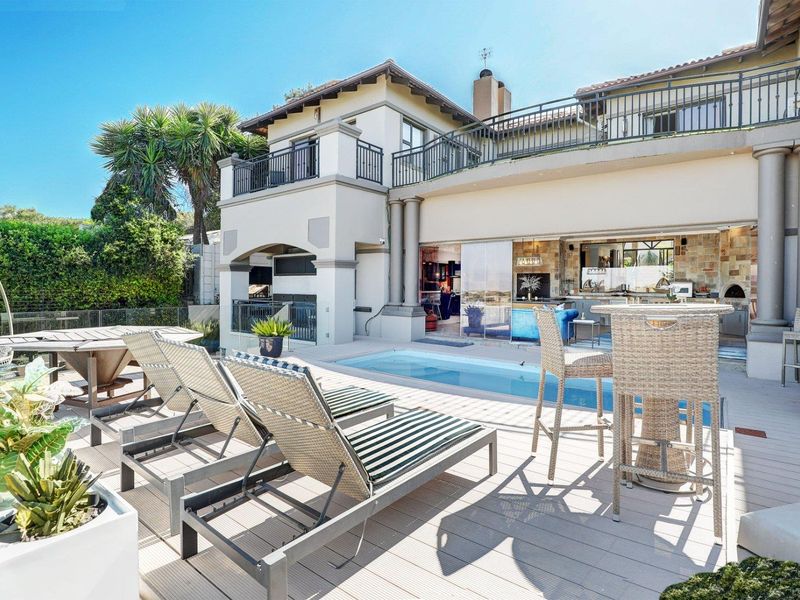 Entertainer's villa in Welgemoed, near Bellville Golf and Tygerberg Nature Reserve; braai room with cocktail bar opening to pool and jacuzzi — five beds, 5.5 baths, three garages.