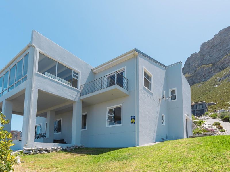 Coastal-mountain lifestyle on the KleinmondāBetty's Bay border with income-ready dual living and a large deck overlooking mountain and sea; four bedrooms, four bathrooms, double garage.