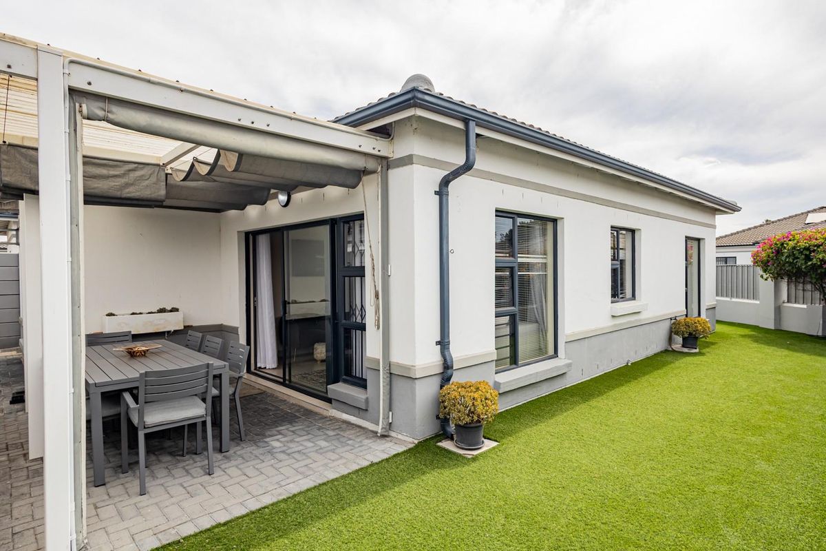 Relaxed coastal living in Greenfields Security Enclave, Parklands, close to Blouberg beachfront and Bayside Mall. Chef's gas kitchen with large serving counter and sheltered patio. Three bedrooms, double garage.