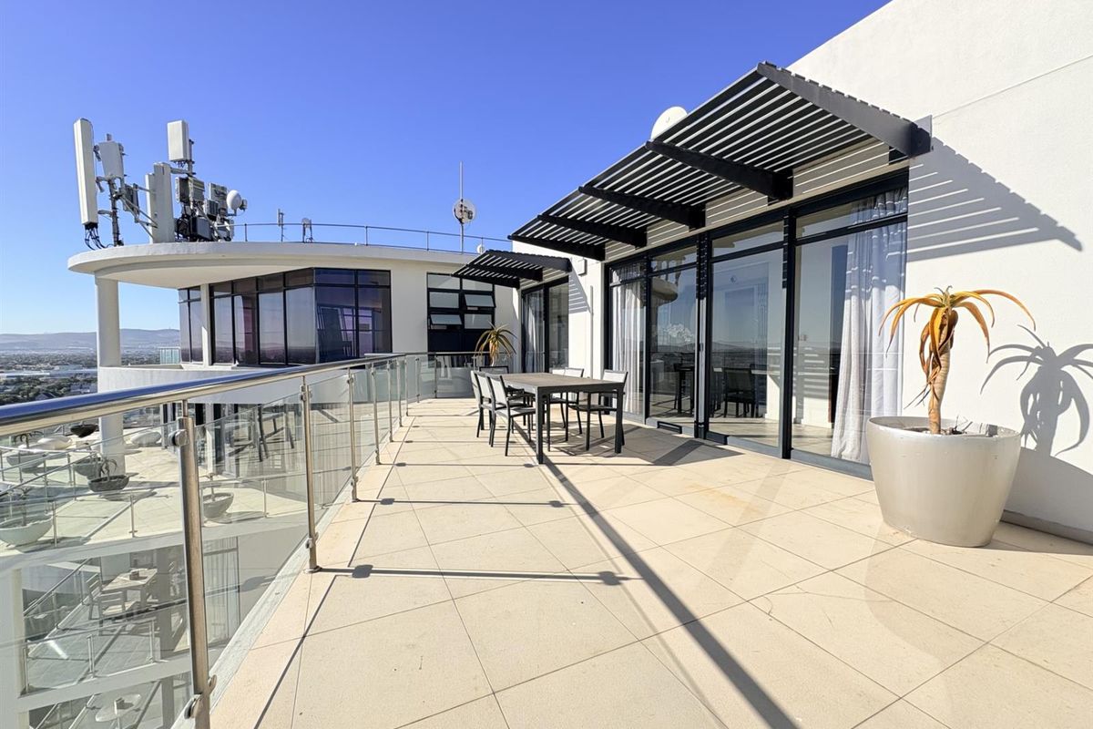 Coastal living in Blouberg with panoramic sea and mountain views, ideal for entertaining on a vast private rooftop terrace. Three en-suite bedrooms, communal pool, secure 24-hour complex.