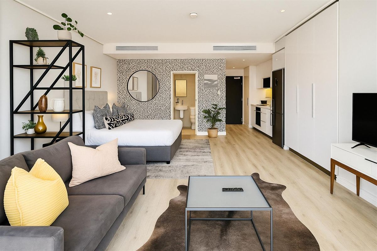 Embrace Bree Street living, steps from Cape Town's best restaurants and cafes; turnkey studio with private balcony and Table Mountain views, rooftop pool, Airbnb-friendly, secure parking.
