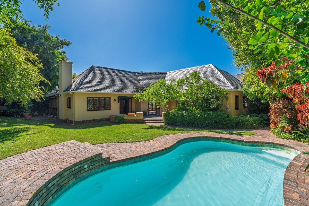 Enjoy tranquil living in leafy Kenilworth Upper with birdsong, pool and lush garden; unique octagonal study and separate guest suite with kitchenette — four bedrooms, three bathrooms.