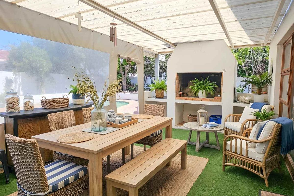 Coastal family living in Marina da Gama near Muizenberg — waterways, markets and beaches nearby. Entertain year-round in enclosed braai room and pool; three beds, three baths, double garage.