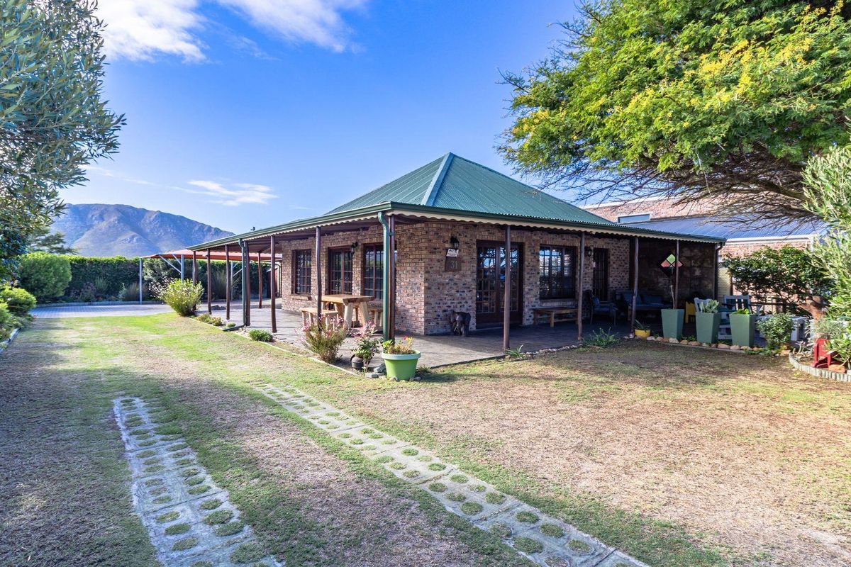Embrace whale-watching coastal living in De Kelders with a wrap-around terracotta porch overlooking a level garden — two bedrooms, two bathrooms, single garage.