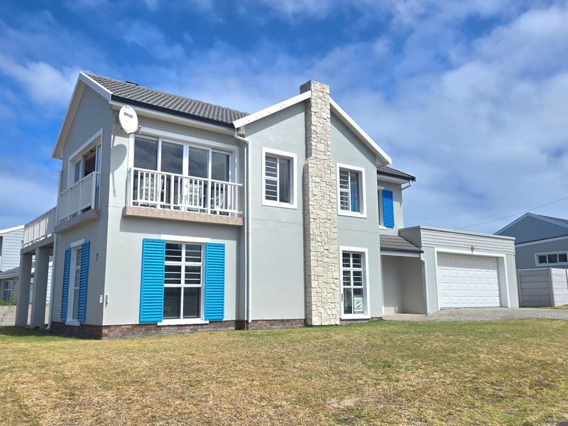 Coastal living meets effortless entertaining in Franskraal, steps from the main beach, with an open-plan layout and uncovered patio with built-in braai — three bedrooms, three baths, double garage.