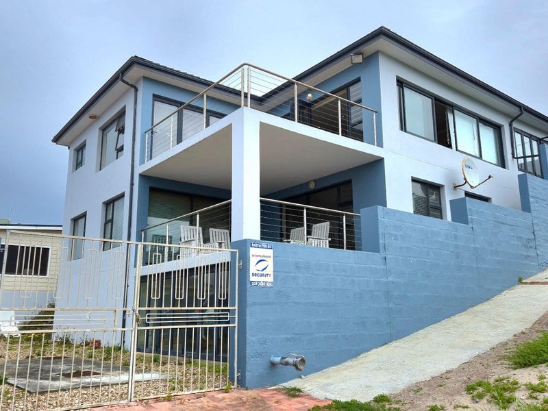 Beachside living steps from Franskraal shoreline, with an upstairs entertainment area featuring a built-in bar, braai and balcony sea views; low-maintenance garden, four bedrooms, two bathrooms, double garage.