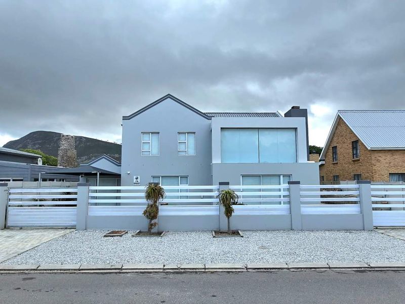 Coastal-mountain living two streets from the Franskraal shoreline, ideal for multi-generational families or rentals. Dual-living layout with indoor braai, master suite mountain views, five bedrooms, three baths.