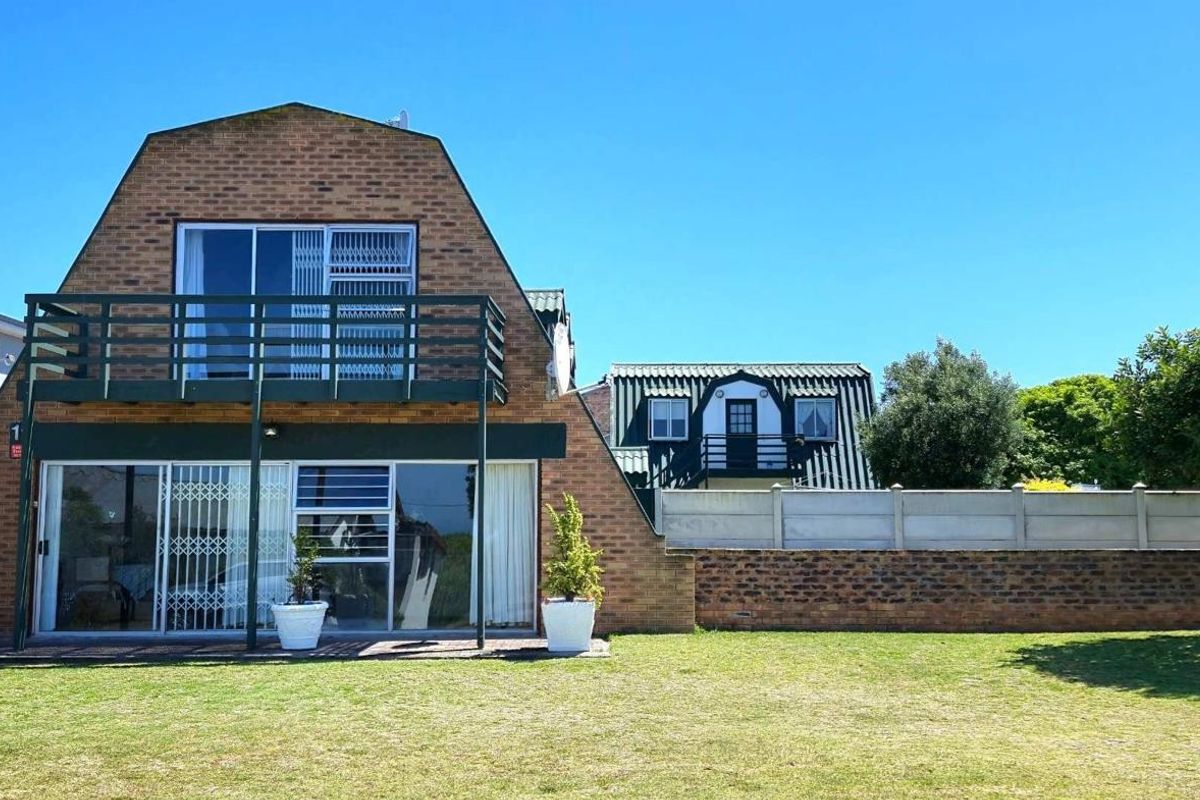 Coastal entertaining and dual-family living in Franskraal, Gansbaai — expansive balconies with distant sea views, built-in braai, private garden; five bedrooms, three bathrooms and two garages.