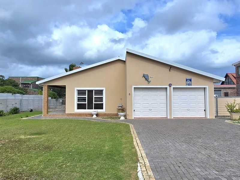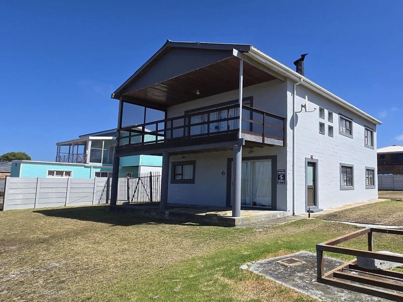 Seaside retreat in Franskraal, footsteps from the beach, with a large level lawn and first-floor built-in braai — seven-bedroom opportunity to renovate and entertain.