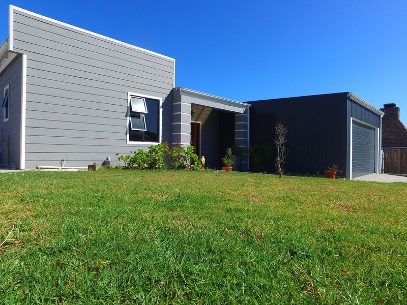 Relaxed coastal living in Franskraal, minutes from beaches and whale-watching; low-maintenance corner garden, covered entertainment area and pool, plus two bedrooms, two bathrooms and double garage.