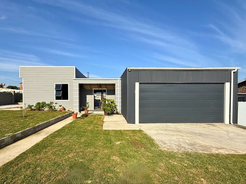 Seaside holiday retreat in Franskraal, 170 km from Cape Town with shops nearby; open-plan living and a generous yard for family fun. Three beds, two baths, single garage.