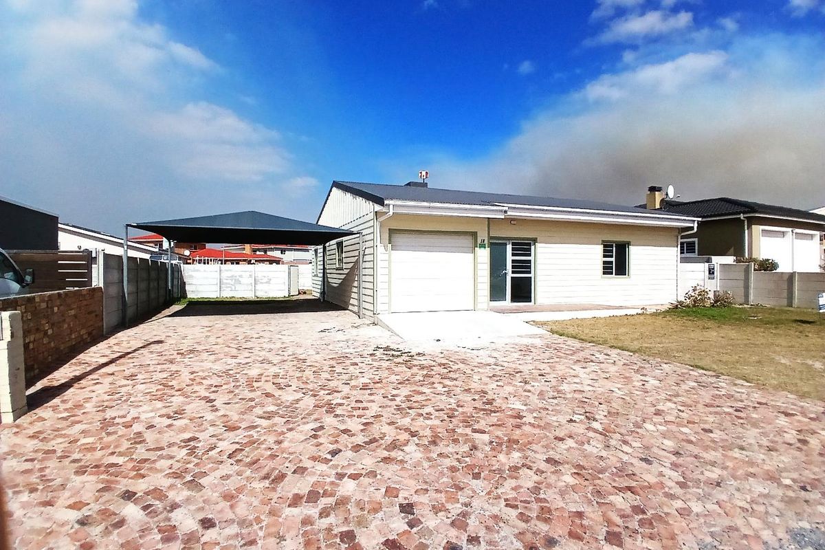 Beachside living in Perlemoenbaai — 600m to the ocean and CBD, easy access to amenities; three bedrooms (two en suite), enclosed backyard, automated garage and double carport.