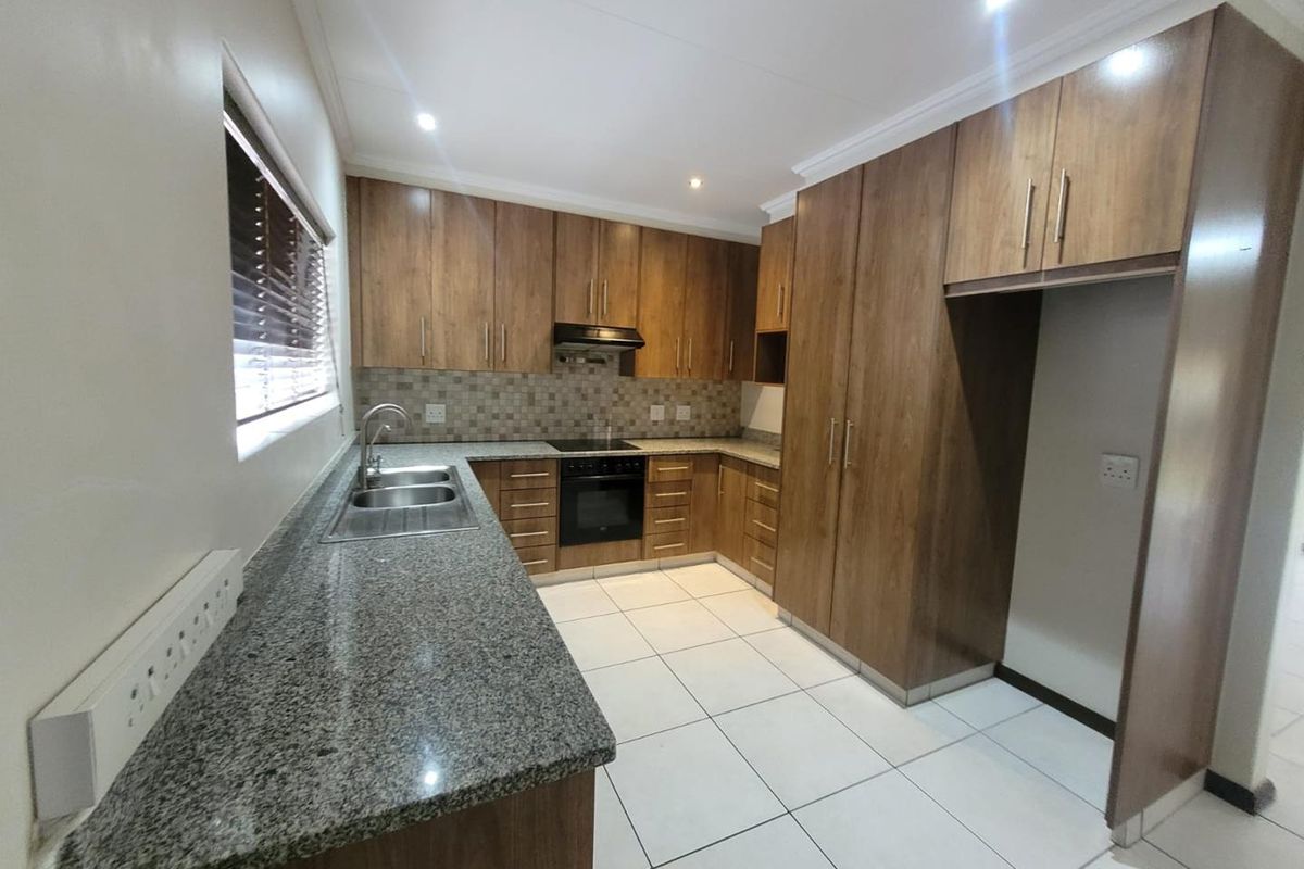 Boasting three spacious bedrooms, this home is designed with a south-entry, north-facing orientation, ensuring an abundance of natural sunlight throughout the day. The open-plan living area seamlessly connects to a well-appointed kitchen, featuring modern appliances such as an oven, hob, and extractor fan. The enchanting fully enclosed braai patio, accessible from the living area, is an entertainer's delight and opens to a beautifully maintained lawned garden, enhanced by high walls and mature shrubs for added privacy.