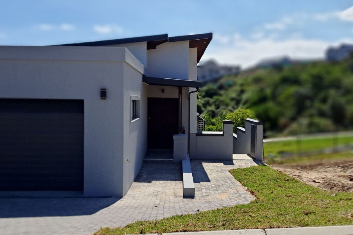 Secure estate living in Eden Residential Estate, George with panoramic mountain views and effortless entertaining — split-level home with modern kitchen, three bedrooms, three baths, double garage.