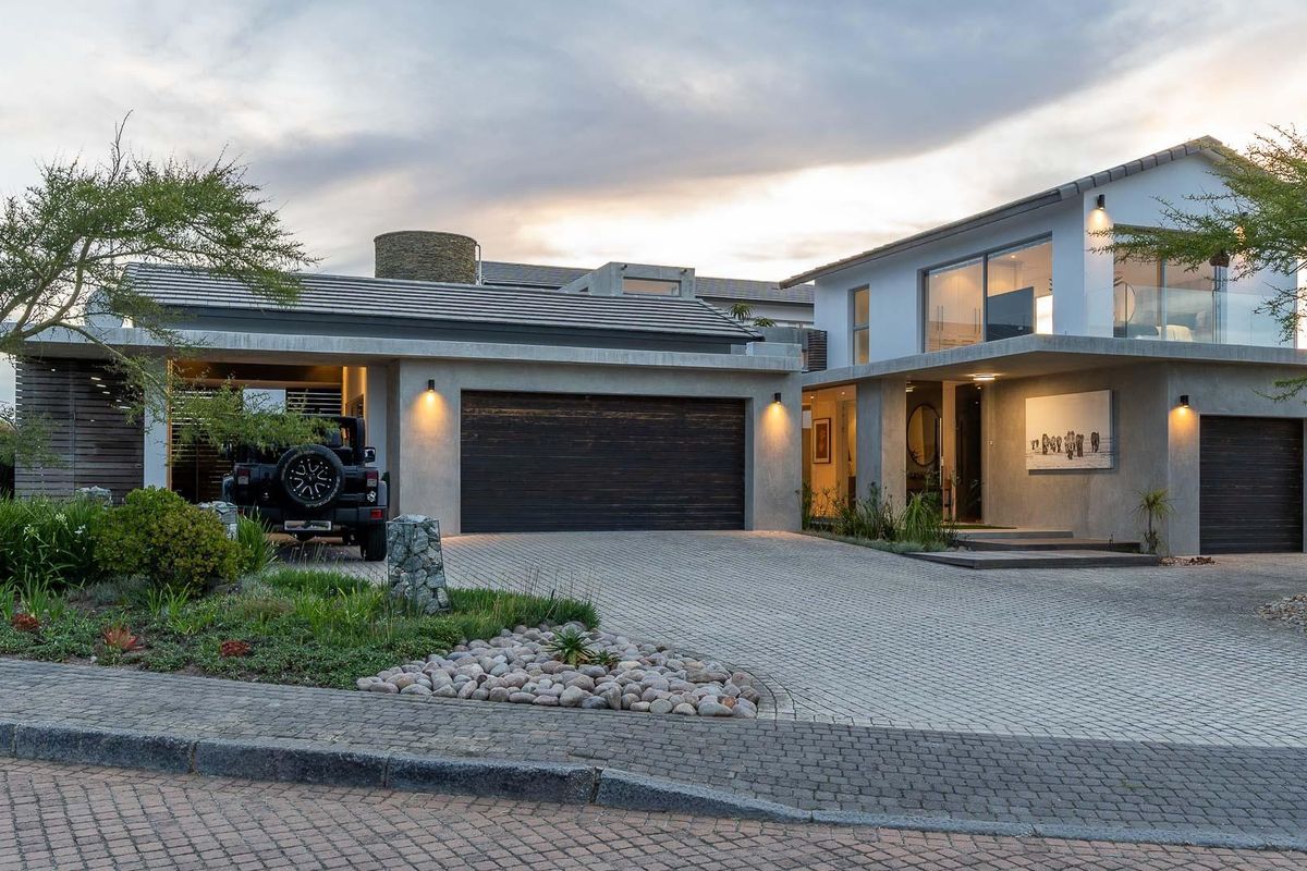 Effortless entertainer’s lifestyle in Oubaai Golf Estate, dam-side with ocean, Outeniqua Mountain and golf-course views. Heated swimming pool, seamless indoor-outdoor flow, five bedrooms, double garage.