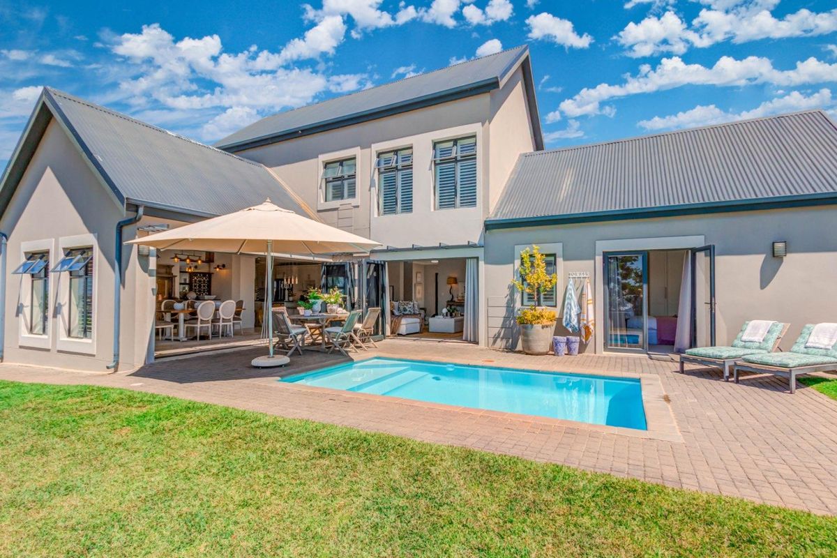 Golf-estate living where springbok roam, open skies and Outeniqua mountain views frame a corner home with summer lounge, pool and effortless flow — five beds, four baths, triple garage.