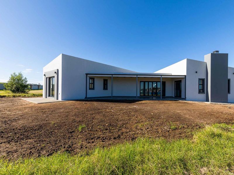 Enjoy relaxed Garden Route living in Le Grand Estate, minutes from a safe beach and George amenities, with Outeniqua Mountain views, modern open-plan design, walled backyard, three bedrooms, two bathrooms.