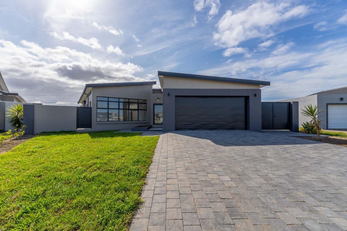 Enjoy relaxed Garden Route living in Le Grand Estate, minutes from a safe beach and George amenities, with Outeniqua Mountain views, modern open-plan design, walled backyard, three bedrooms, two bathrooms.