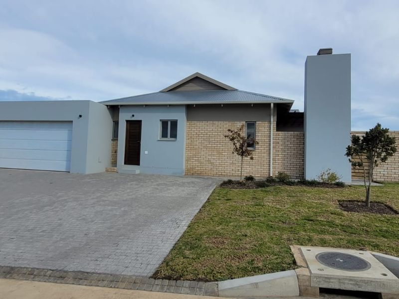 Relaxed Garden Route lifestyle in Mooikloof Country Estate, Hansmoeskraal, with private garden and built-in braai, modern quartz kitchen, double garage, three bedrooms, two baths.
