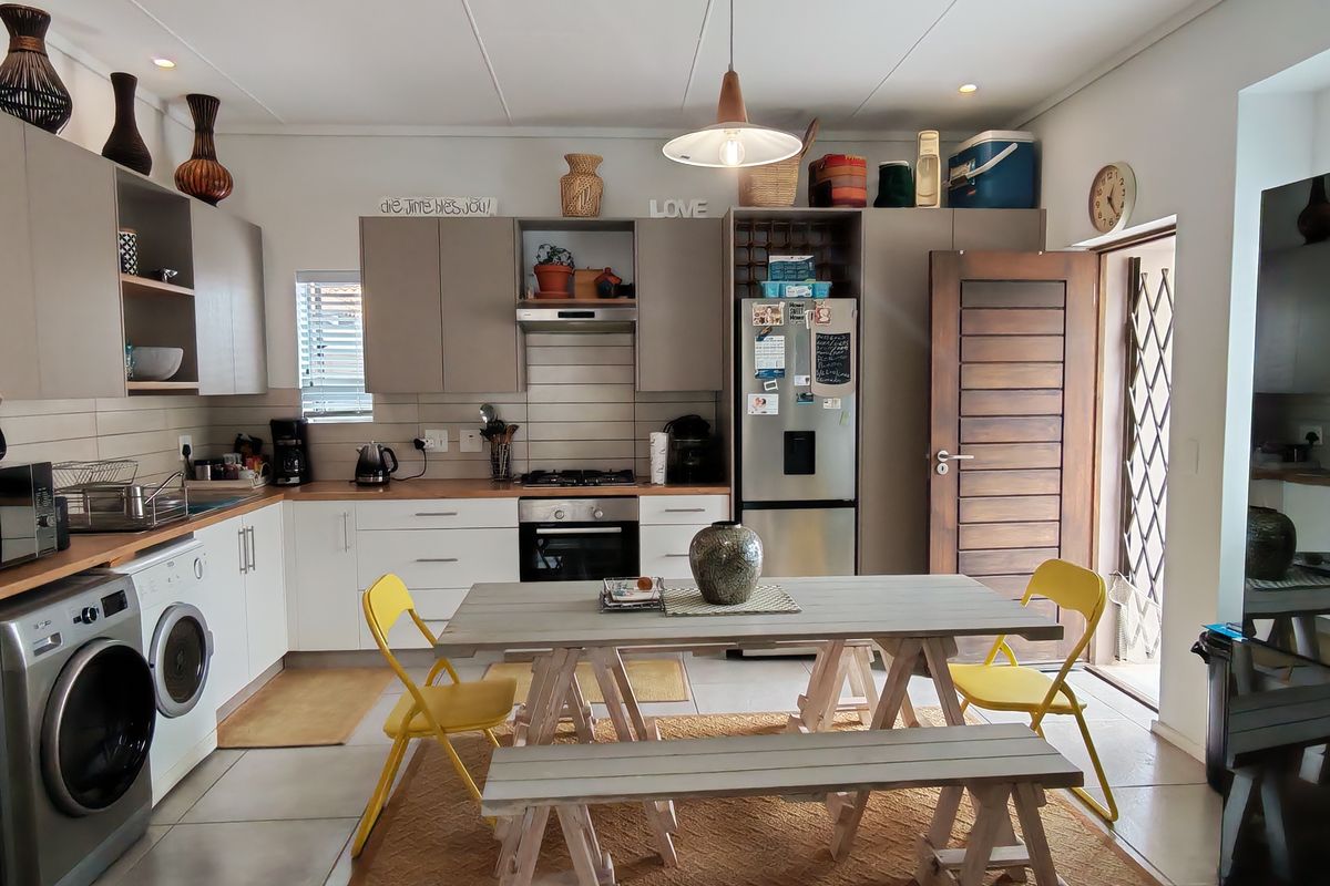 Easy family living in a secure estate minutes from George Airport and Garden Route Mall, featuring an enclosed patio with built-in braai and open-plan kitchen; three bedrooms, two bathrooms.