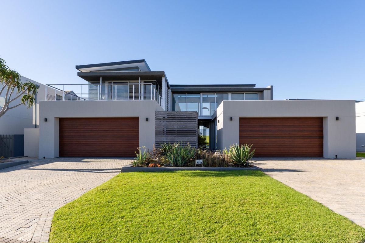 Resort-style estate living with panoramic mountain views, moments from Herolds Bay beach and George Airport; private pool and built-in braai, four en-suite bedrooms and four garages.