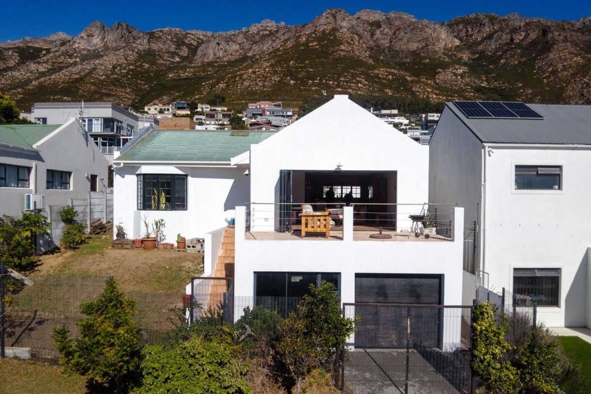 Relax with bay and Helderberg views from this light-filled home in Valsbaai, featuring a dedicated office, private garden, two bedrooms, two baths and single garage.