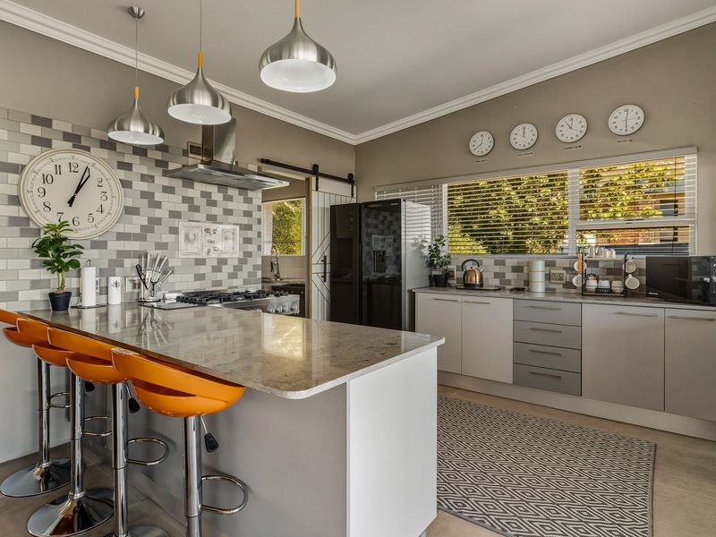 Embrace relaxed village-style coastal living in Gordon's Bay, with distant sea views, balcony and double-volume dining with exposed beams; four bedrooms, three baths and triple garage.