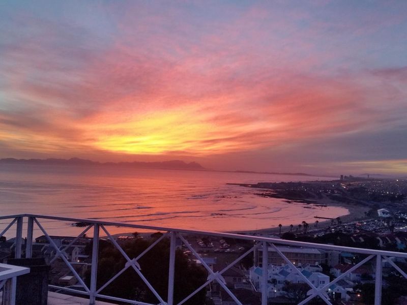Elevated coastal living with panoramic False Bay and mountain views in Gordon’s Bay's Mountainside, featuring wrap-around balconies and five bedrooms with four extra-length garages.