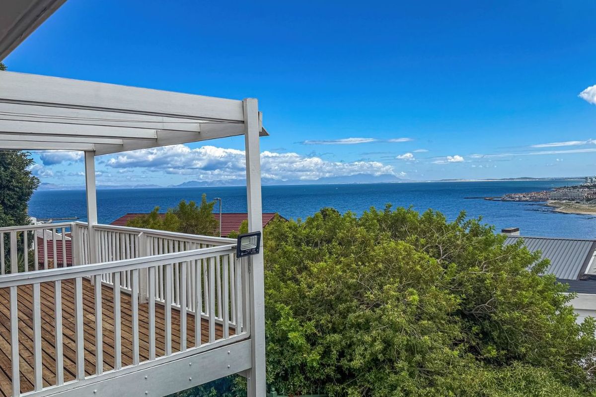 Cul-de-sac coastal living in Mountainside, Gordon's Bay — ideal for relaxed entertaining and sunset views, with a wrap-around deck offering panoramic False Bay and Table Mountain vistas.