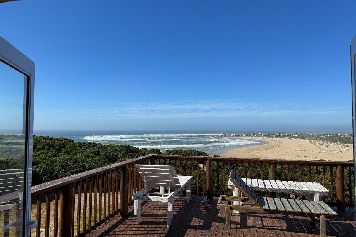 Relaxed coastal living in Grootrug Estate on the Kanon side of the Gourits River, minutes from an unspoilt beach — elevated deck with panoramic ocean views; four bedrooms, three bathrooms.