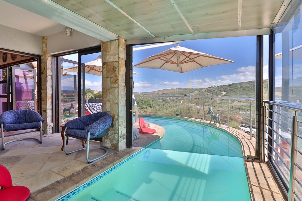Embrace tranquil Groot Brak River valley living beneath the Outeniqua Mountains, with seamless indoor-outdoor flow, enclosed jacuzzi room and braai terrace — six bedrooms, double automated garage.
