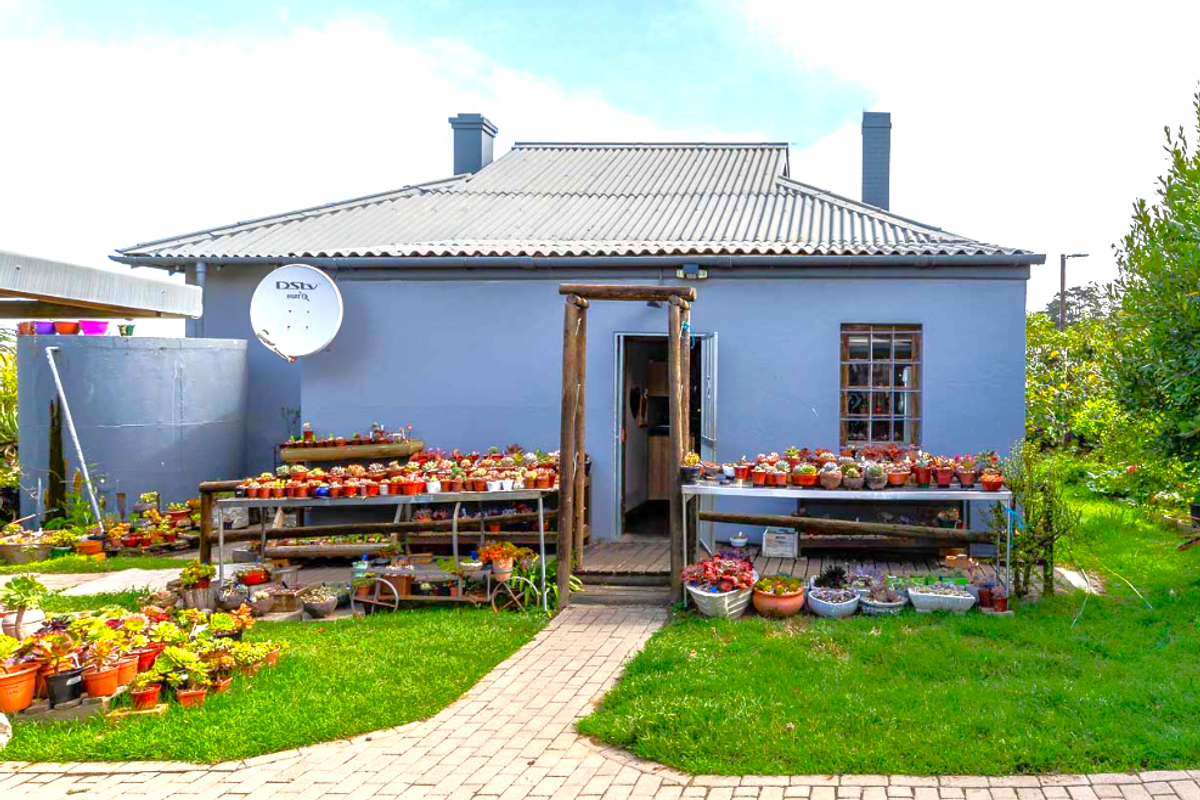 Relaxed riverside living near the beach in Groot Brakrivier, featuring high-ceiling Cape Dutch charm, large succulent garden and covered patio, plus a one-bedroom flatlet and two carports.