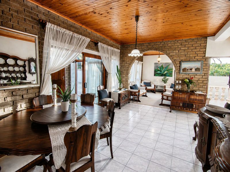 Just steps from the beach, host effortless gatherings with an inside braai room and verandah; main 7-bed house plus 2-bed flatlet and bachelor flat, 5.5 baths, double garage.