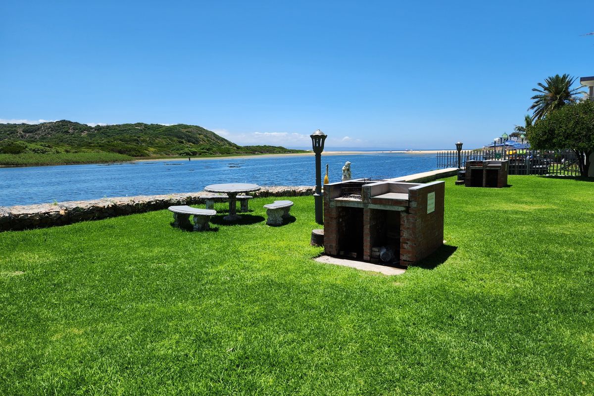 Waterfront living on Hartenbos riverbanks with river, lagoon and sea views, direct lawn and braai area bordering the Riviera Hotel with amenities; ground-floor apartment, 3 beds, 2 baths, furniture negotiable.